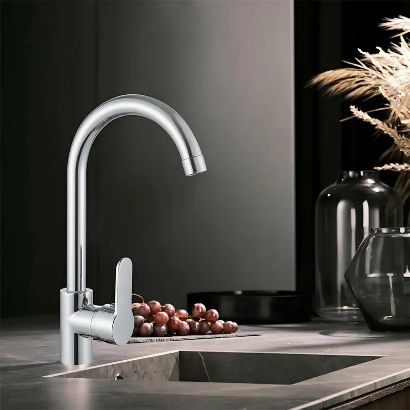 Samenvatting: Dit is een enkele koude keukenkraan vervaardigd door de Chinese fabrikant Haogeer. Het behoort tot de moderne en minimalistische stijl van hardware voor keuken en badkamer, met hoogglans verchroomd proces, delicaat en helder uiterlijk, en past zich aan alle soorten keukendecoratiestijlen aan. Het heeft een stabiele textuur, is oliebestendig en gemakkelijk schoon te maken.